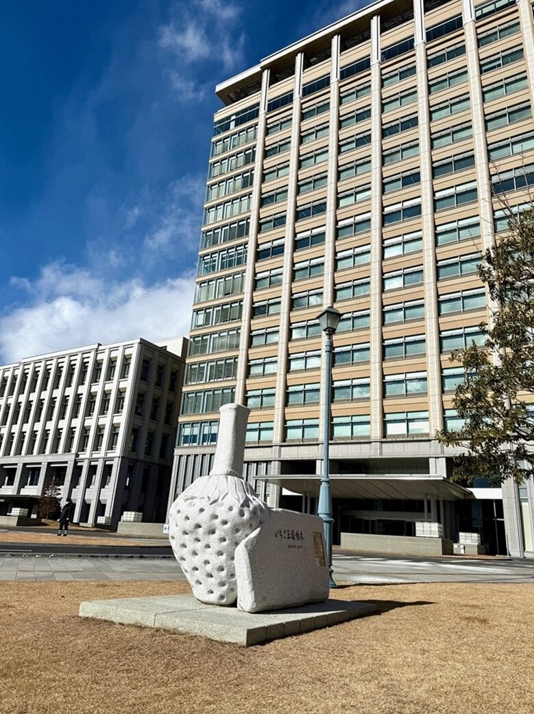 システムの導入にあたっては、評価計算時間および評価替え作業の大幅な短縮、評価物件データの一元管理など家屋評価事務の効率化といった観点からシステムの検討が行われました。▼ 栃木県庁様 外観と「いちご王国」のモニュメント